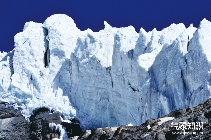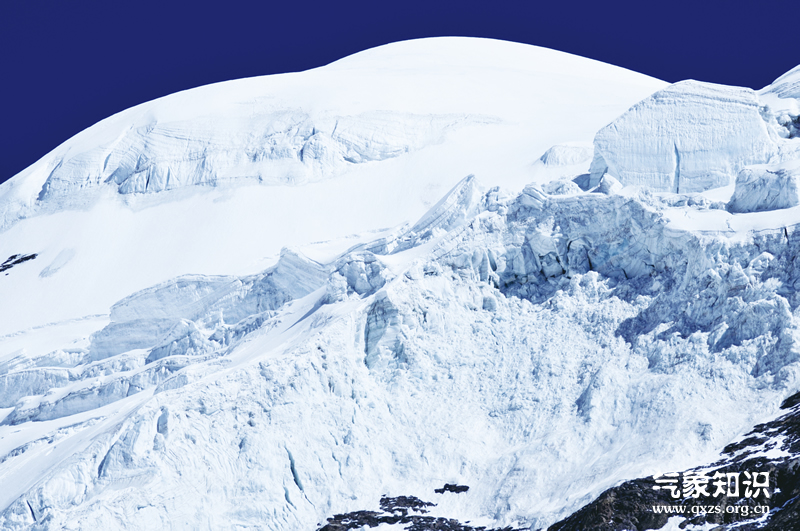 最高处的冰川已经依稀能够看见裸露的岩石,我们多么希望她美丽的容颜能够慢点消失