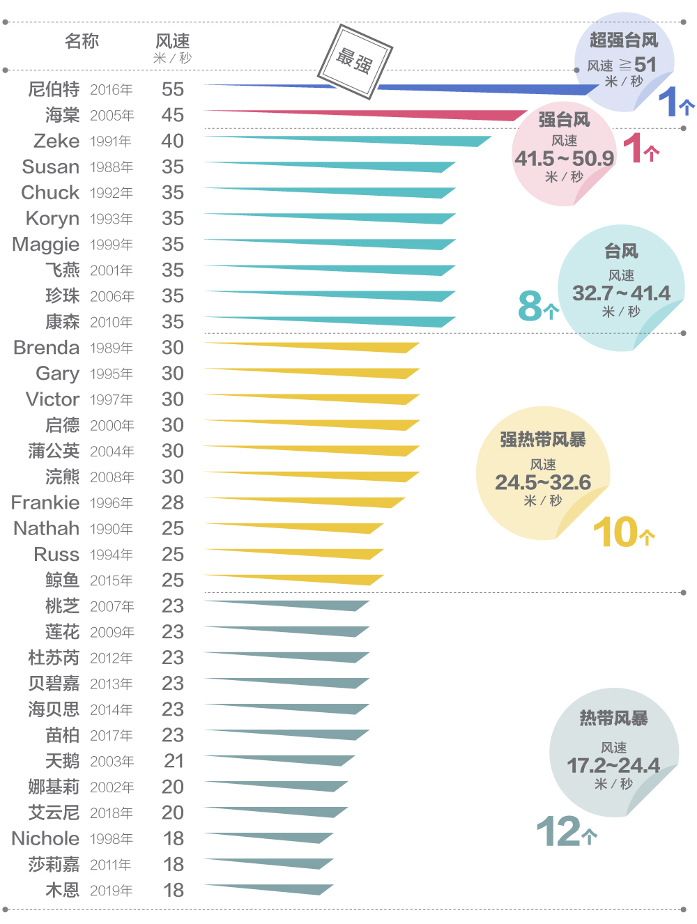 近30年数据显示,一般初台以热带风暴或强热带风暴为主。这是因为初台平均生成月份偏早,海温和水汽条件在整个台风季尚处于“初级阶段”,没有那么大的能量提供给初台。
