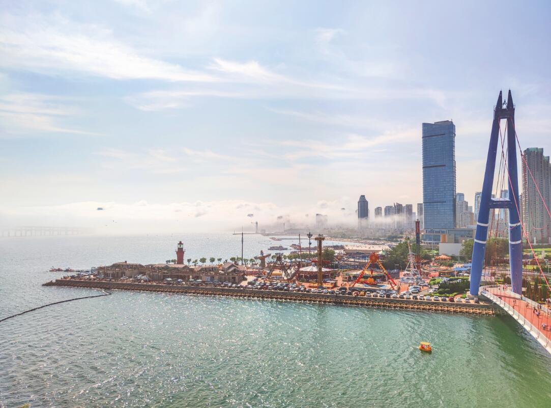 地处辽东半岛最南端的大连,三面环海,背靠千山山脉,由于具有大陆性和海洋性的双重气候特征,使其沿海附近成为海雾的多发区。在春、夏季节,在大连沿海经常能目睹海雾奇观:洁白的大雾不断从海面涌上岸边,将广场和楼宇轻轻掩住,时隐时现,如同披上了神秘面纱的仙境一般,远处沿着海岸线山峰隆起、层层叠叠,泼墨写意,犹如一幅场面宏阔的水墨山水画。